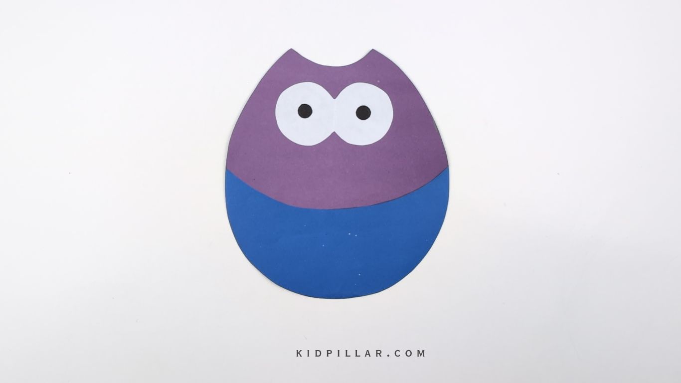 3. Paste the face cutout on the body cutout of the owl. Using scissors, cut the top blue part.
