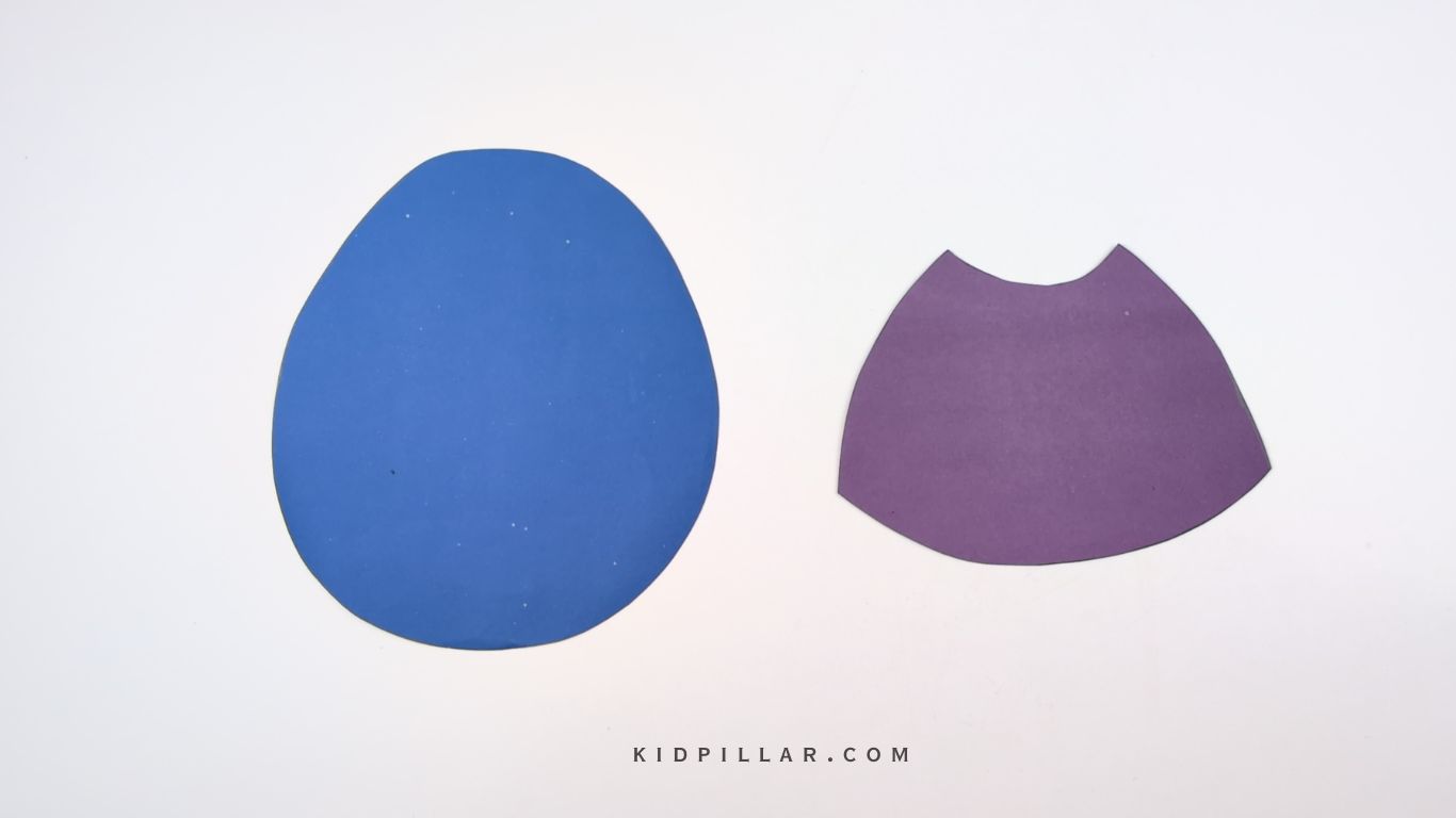 1. Take construction paper in the colour of your choice and cut out a fat oval shape to make the body of your handprint craft. My kiddo chose blue.