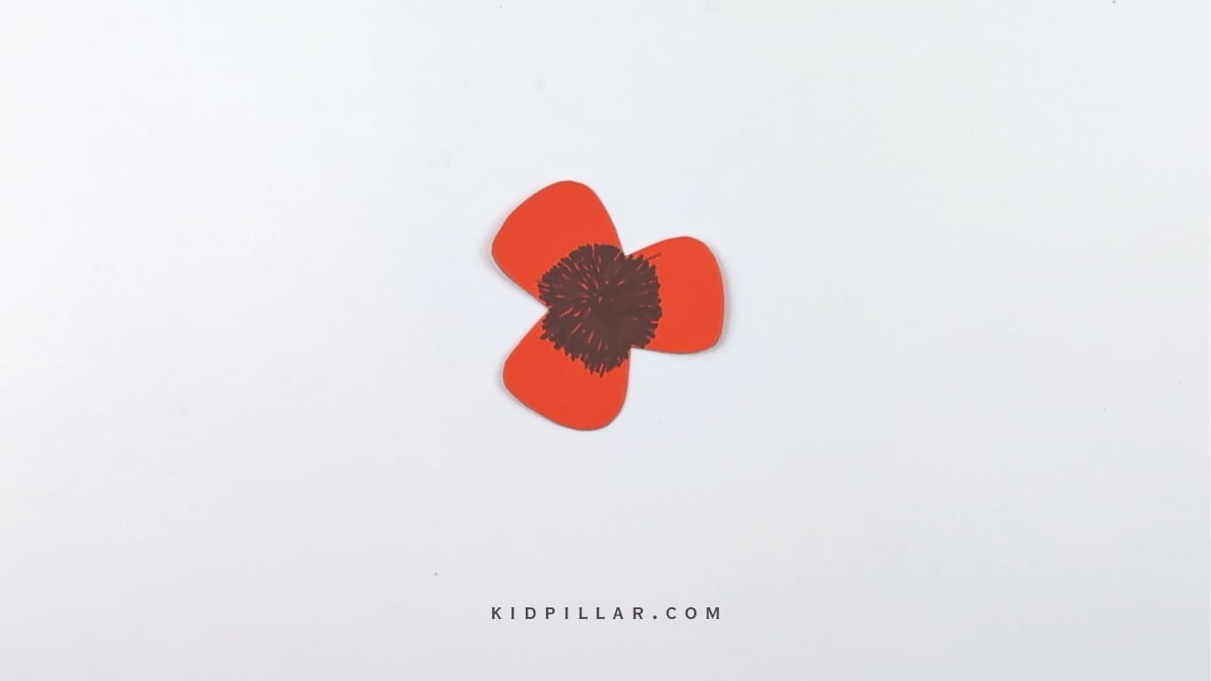 Step 4: To make the poppy flowers, draw a three-petal poppy flower outline on a red craft paper and cut it out. You will need at least 6 cutouts of the poppy flower.