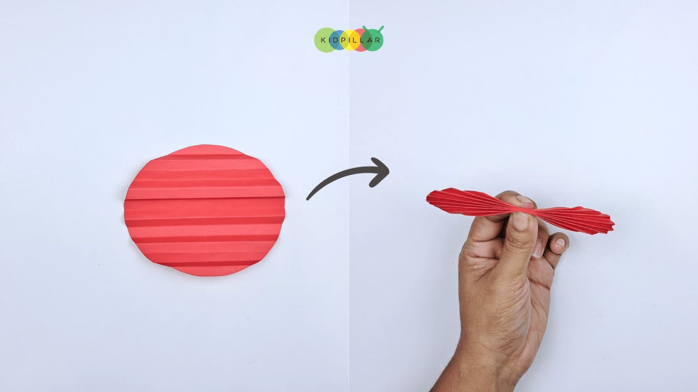 Step 3: Unfold the last fold to get the semi-circle shape. Fold it along the diameter to make thin accordion folds.