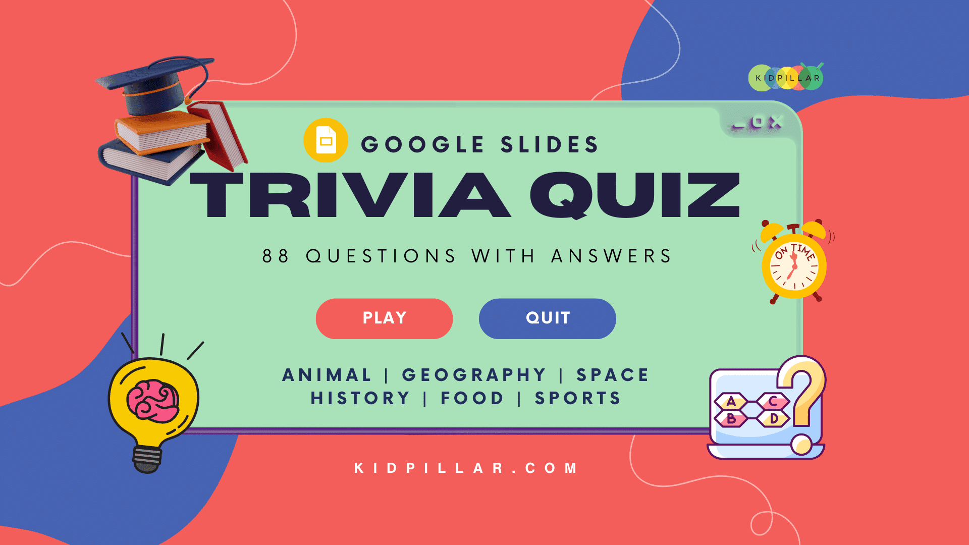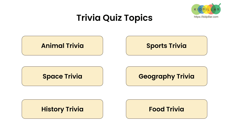 Indulge in a fun session of Trivia Quiz Game with these Google Slides. These Fun Trivia Questions for Kids (with Answers) will test your kids’ knowledge and sneak in some really cool fun facts into their vast repertoire of knowledge. This trivia quiz for classroom covers six topics that include trivia on Sports, History, Geography, Space, Food and Animals.