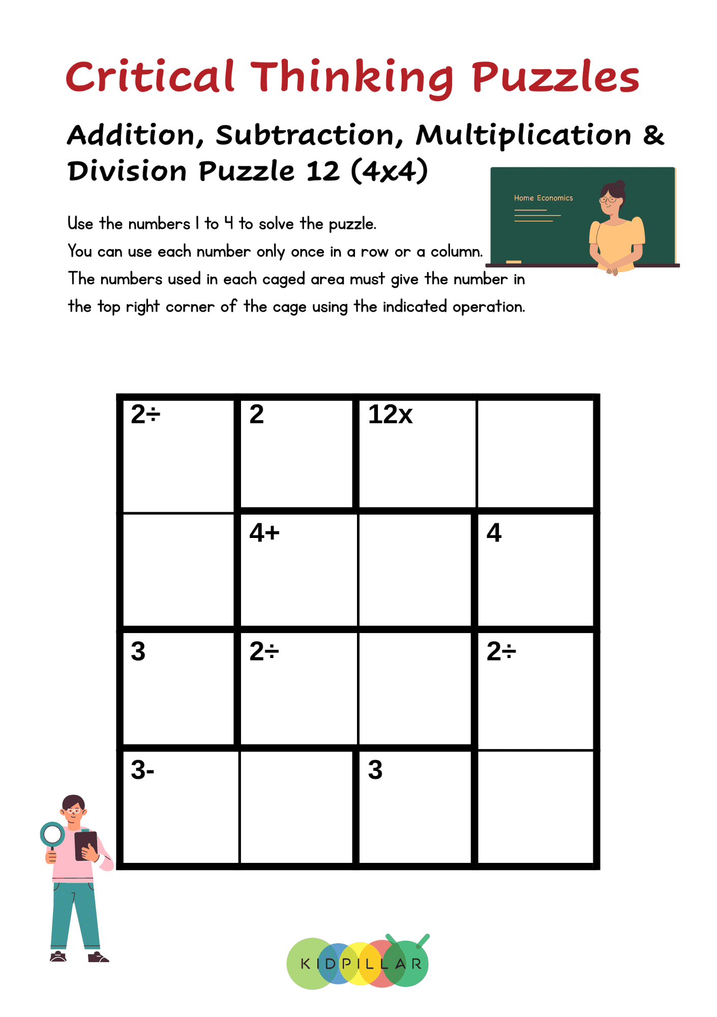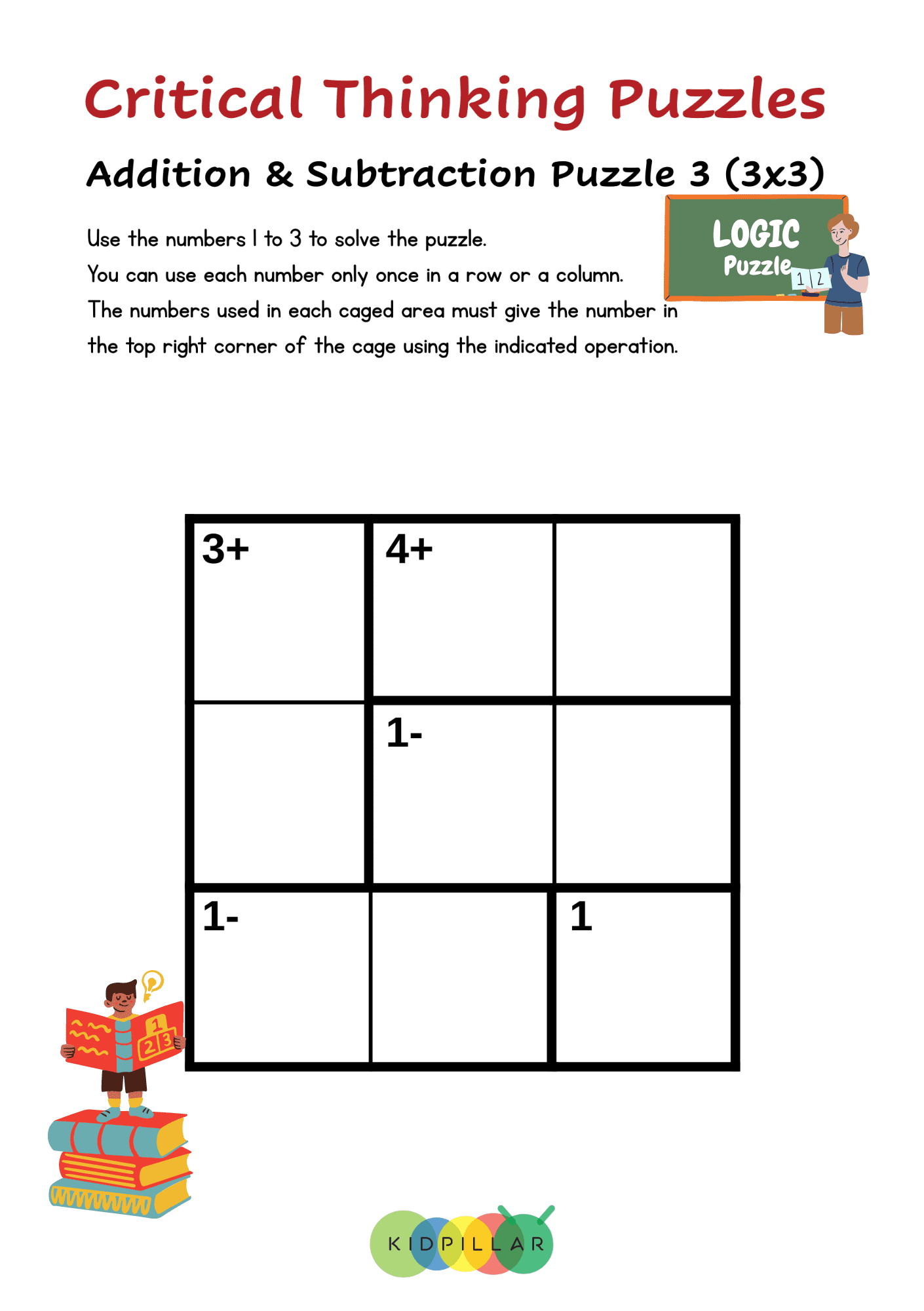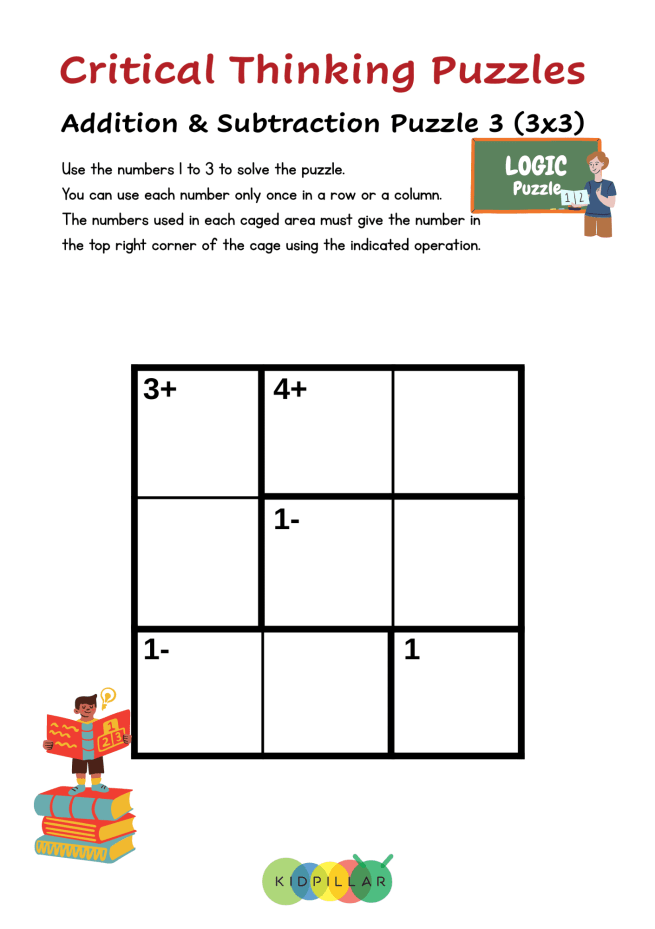 This pack of Critical Thinking Puzzles is a fun way to boost lateral thinking, logical reasoning while working on math skills. Our printer-friendly pack of 20 Math puzzles contains ten 3×3 puzzles, five 4×4 puzzles and 5 5×5 puzzles with varying levels of difficulty.